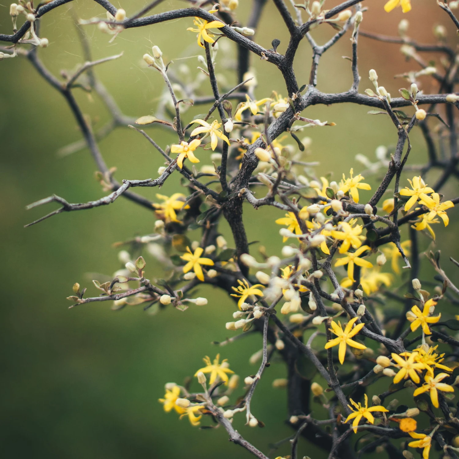 Im Spätwinter oder Frühjahr bildet der Zickzackstrauch sternförmige Blüten, die einen leichten süßlichen Duft verströmen. Steht der Zickzackstrauch zu warm, werden häufig keine Blüten gebildet.