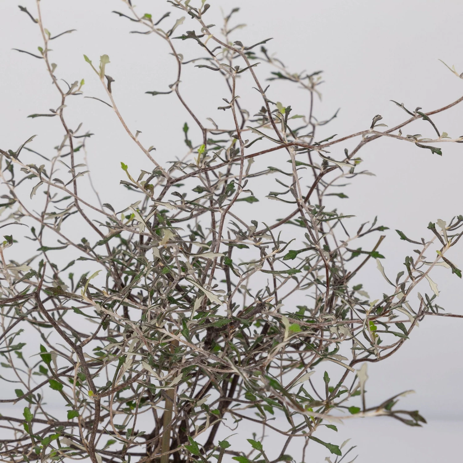 Der Zickzackstrauch (Corokia cotoneaster) mit seinem kleinen oval bis eiförmigen Blättern begeistert mit seinem filigranen Wuchs. Die immergrünen bzw. silbernen Blätter bleiben über das gesamte Jahr an der Pflanze erhalten. Der Wuchs dieser Zimmer- oder Kübelpflanze ist aufrecht pyramidal, die Äste und Triebe haben einen bizarren zickzackförmigen Wuchs. Die Pflanze erreicht eine Höhe von bis zu 2 Metern.